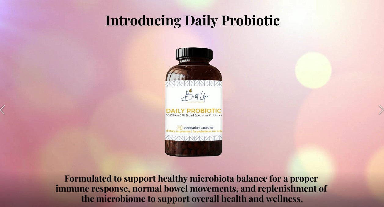 Daily Probiotic contains strains shown to benefit gut health and immune health, proper digestion and elimination, mucosal lining health, balanced microbiome, and overall bowel health.